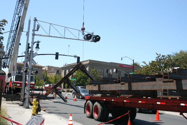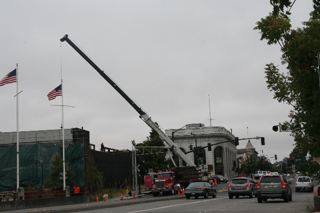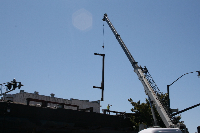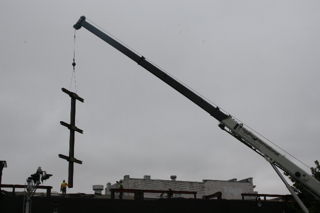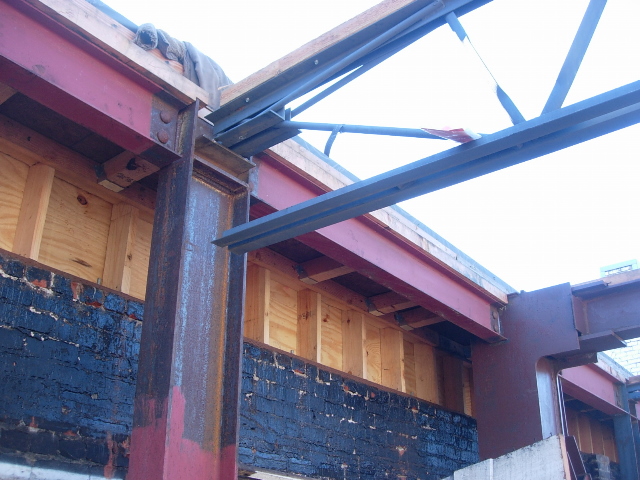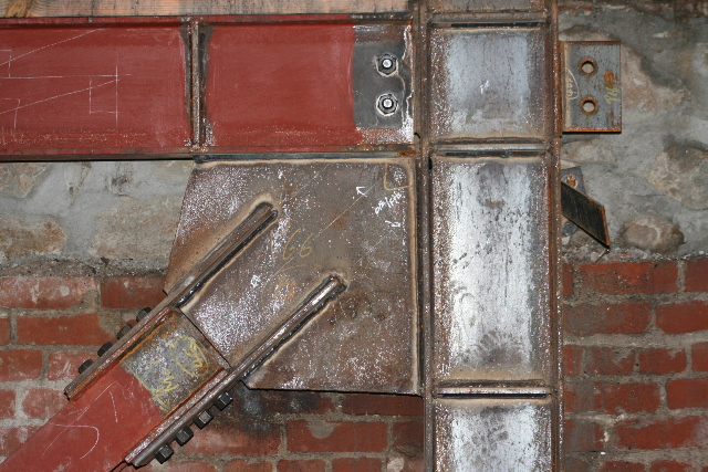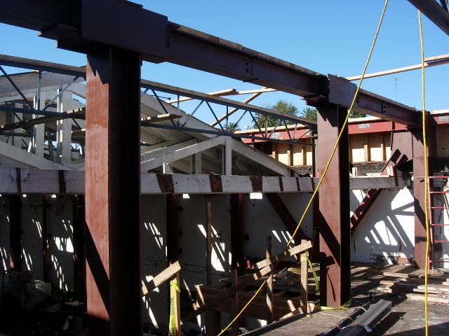 Side plate steel shop welded steel bolted moment frames were utilized in transverse direction while steel braced frames were used in longitudinal direction. Prefabricated modules of the steel moment frame columns with beam stubs were erected using a vehicular crane. Once they were secured in place, beam links and steel braces were bolted on. The field welding was minimized and speedy erection allowed for significant cost savings to the project while minimizing affects on a busy downtown location.